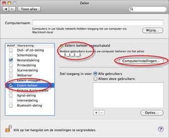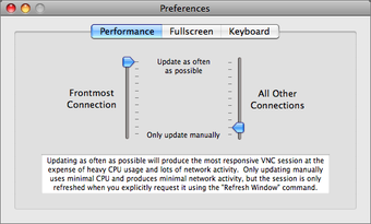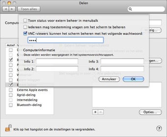 VNC staat voor Virtual Network Computing. Chicken of the VNC bracht dit concept oorspronkelijk naar de Mac. In het programma voer je in een loginscherm het IP-adres van de "host"-computer in, oftewel het systeem dat je wil besturen. Als je de wachtwoordcontrole doorstaat, opent er een venster met het beeldscherm van de host. Hier ga je mooi je gang, want voor díe computer is het alsof je hem fysiek op locatie bedient.